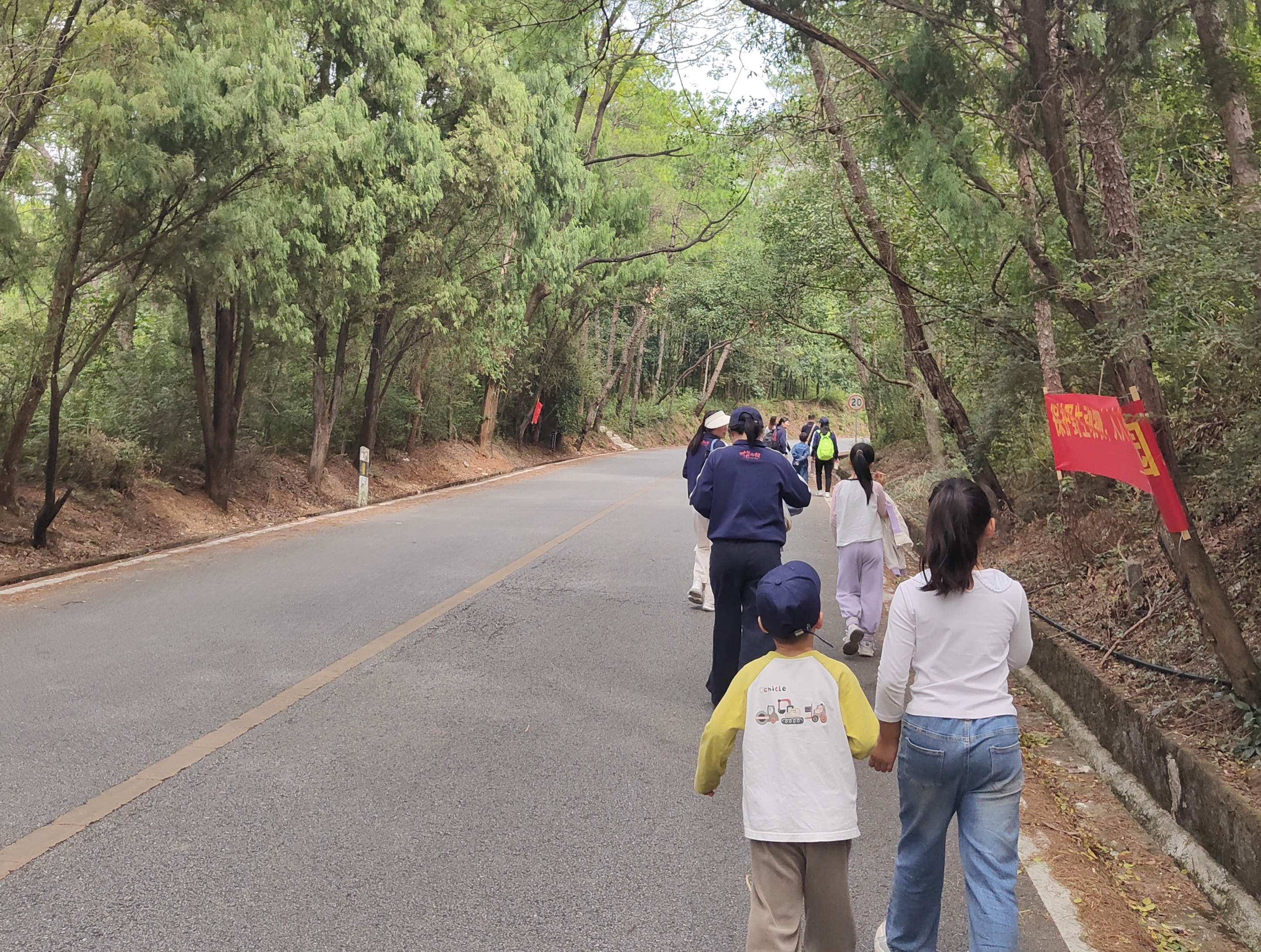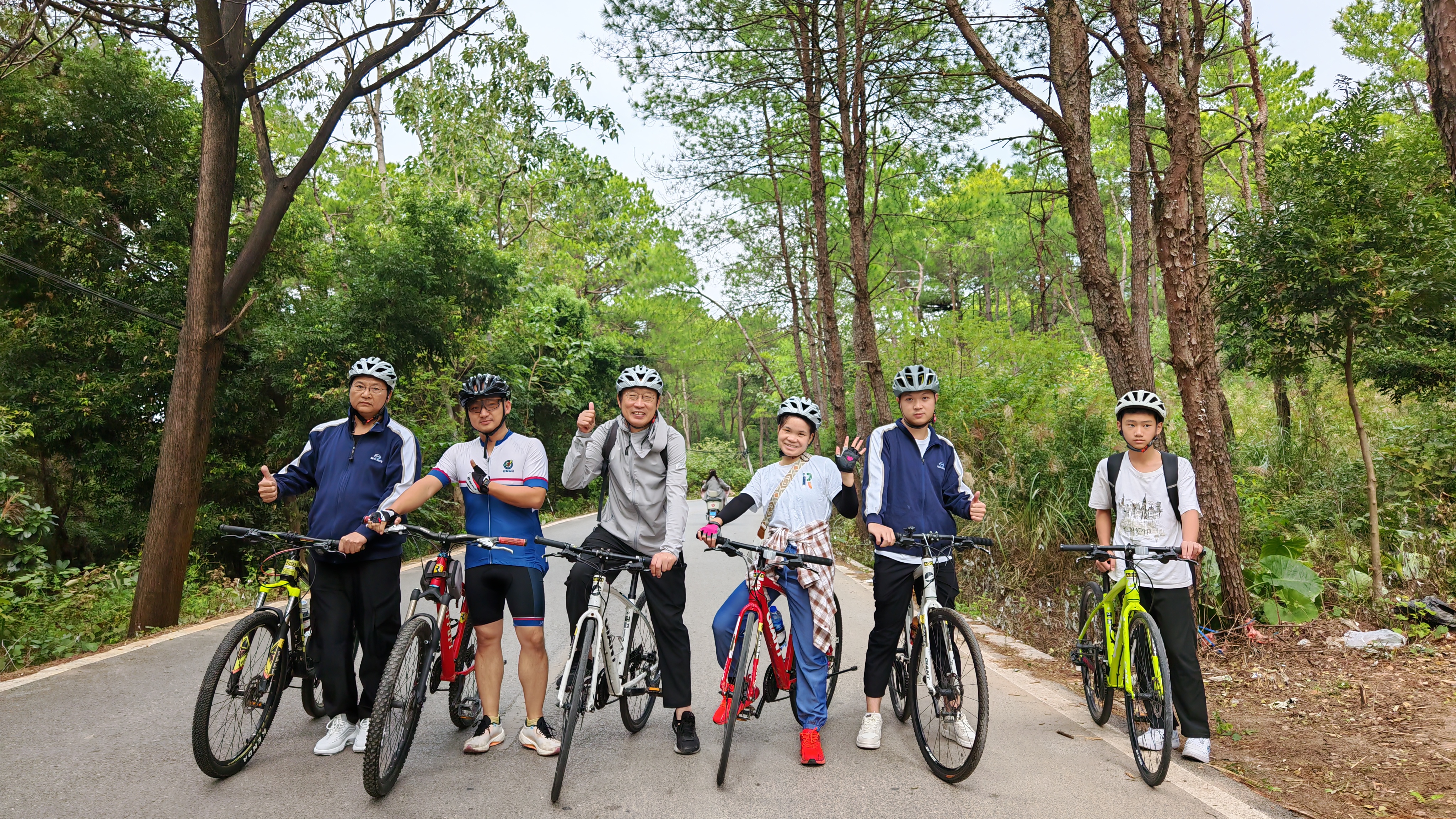 骑行队伍亦同时出发,他们以车轮丈量山间距离,用汗水挥洒蓬勃朝气,在秋意弥漫的道路上汇成一道流动的风景线。